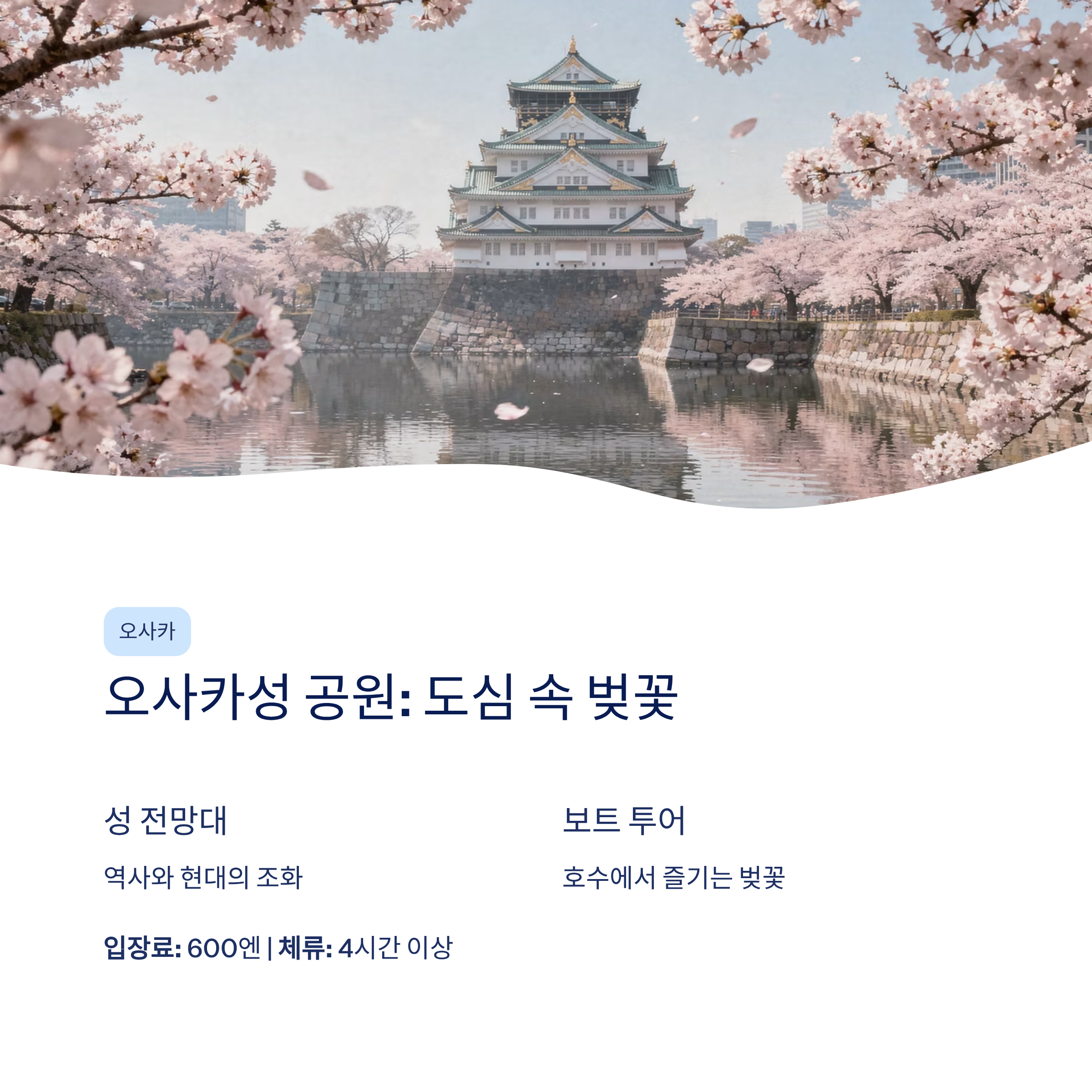 "오사카를 여러 번 왔지만, 벚꽃 시즌에 오사카성은 정말 특별했어요. 사진 찍을 맛 납니다!"주변 맛집 & 카페 추천