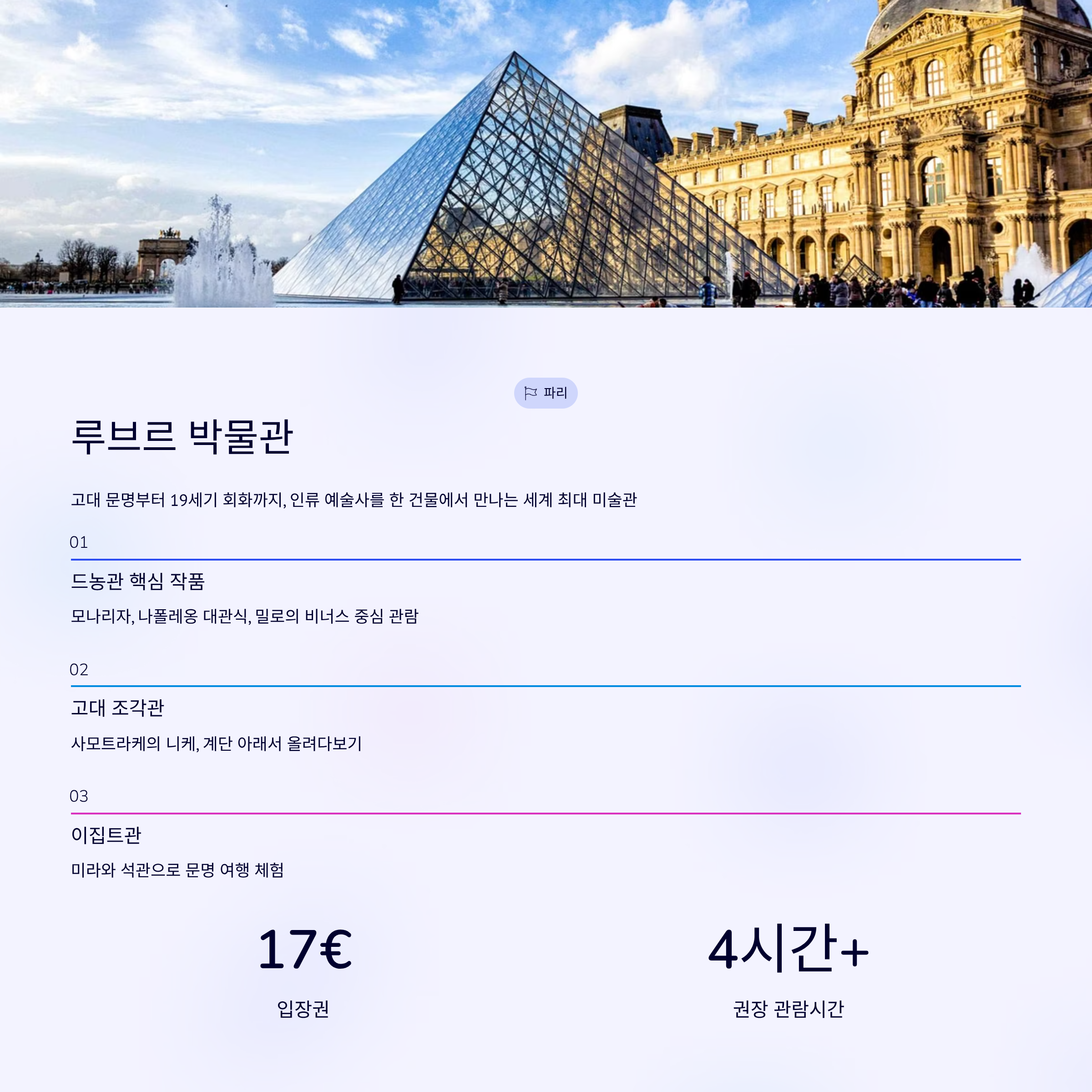 모든 작품을 보려 하기보다, 몇 작품이라도 깊이 있게 마주해 보세요.파리에서 예술의 역사 전체를 보고,