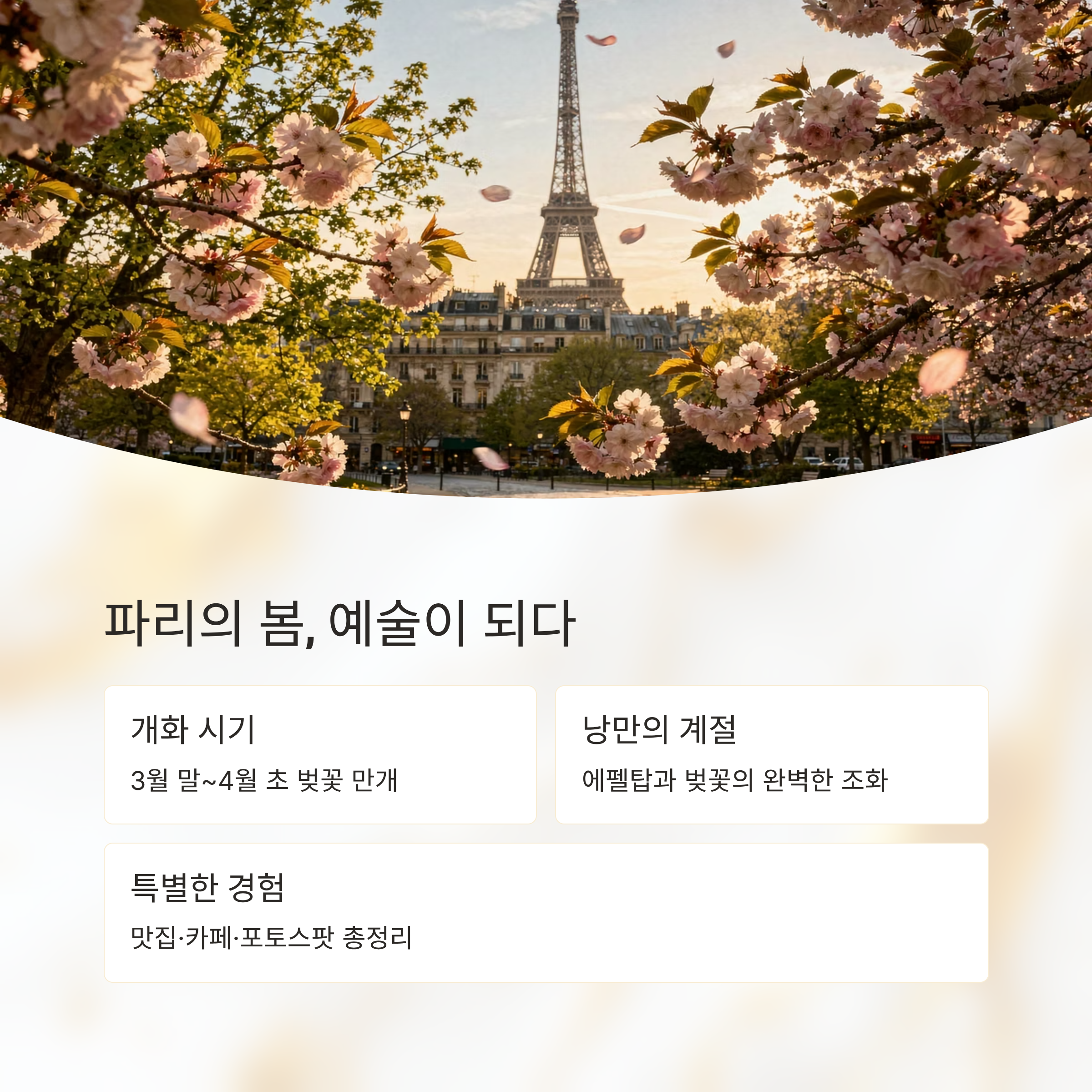 파리 봄 여행: 에펠탑·벚꽃 개화일정과 인기 포토스팟여행 2026. 3. 7. 17:00