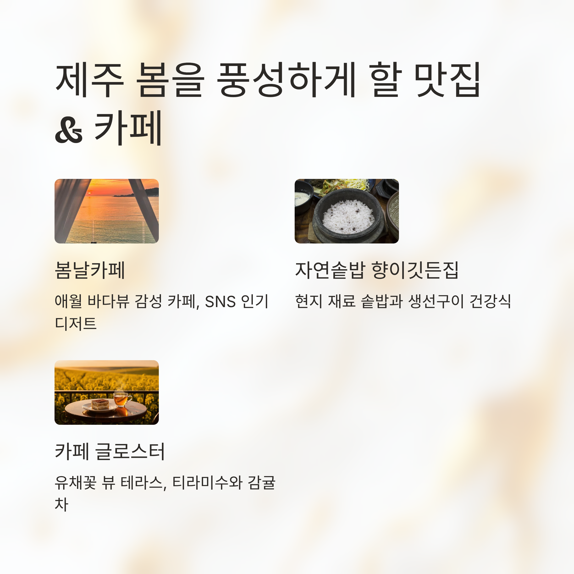 제주의 봄을 더 풍성하게 해줄 맛집 & 카페 3곳
