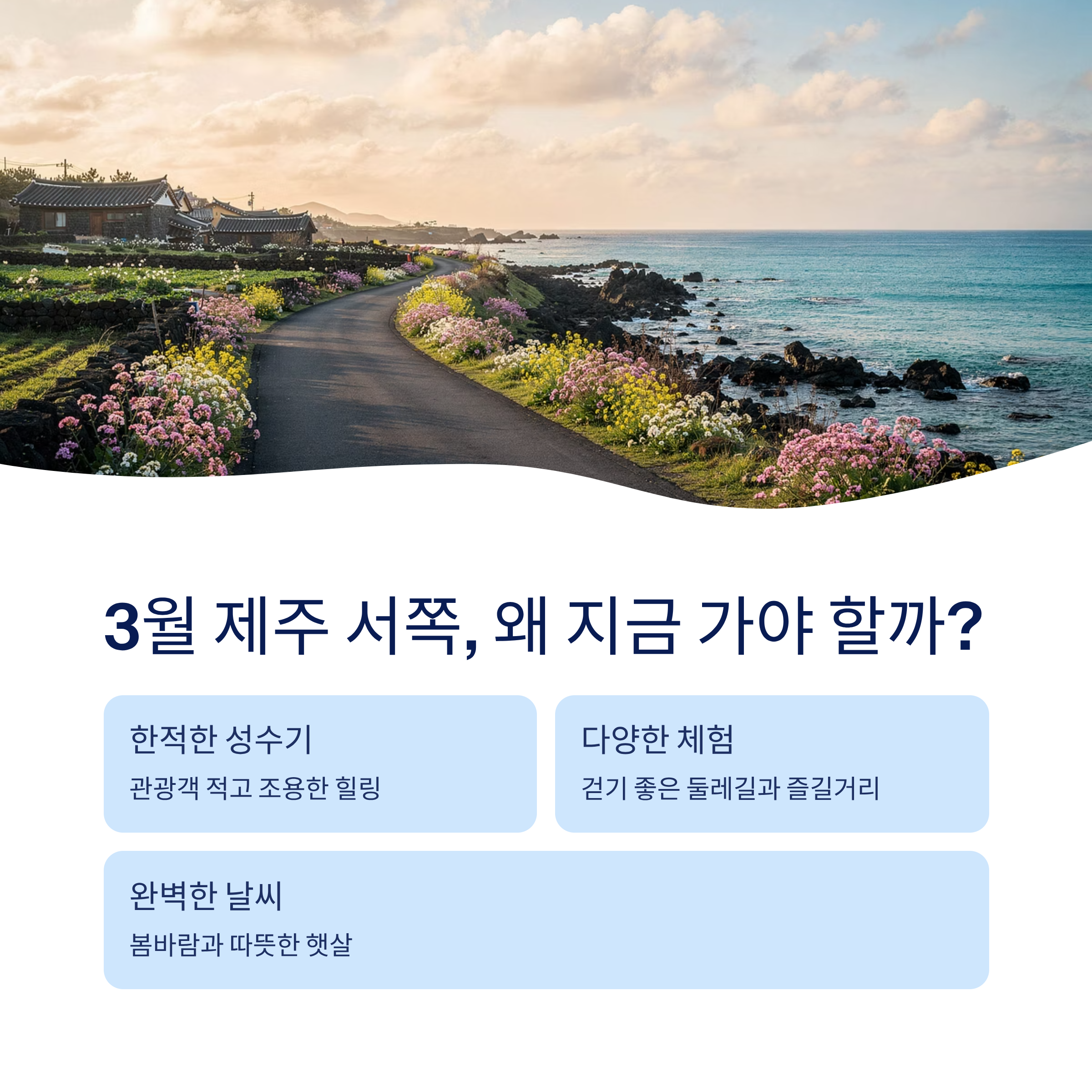 봄바람 따라 떠나는 제주 서쪽 여행, 꼭 가야 하는 이유와 체험 가득한 추천 코스