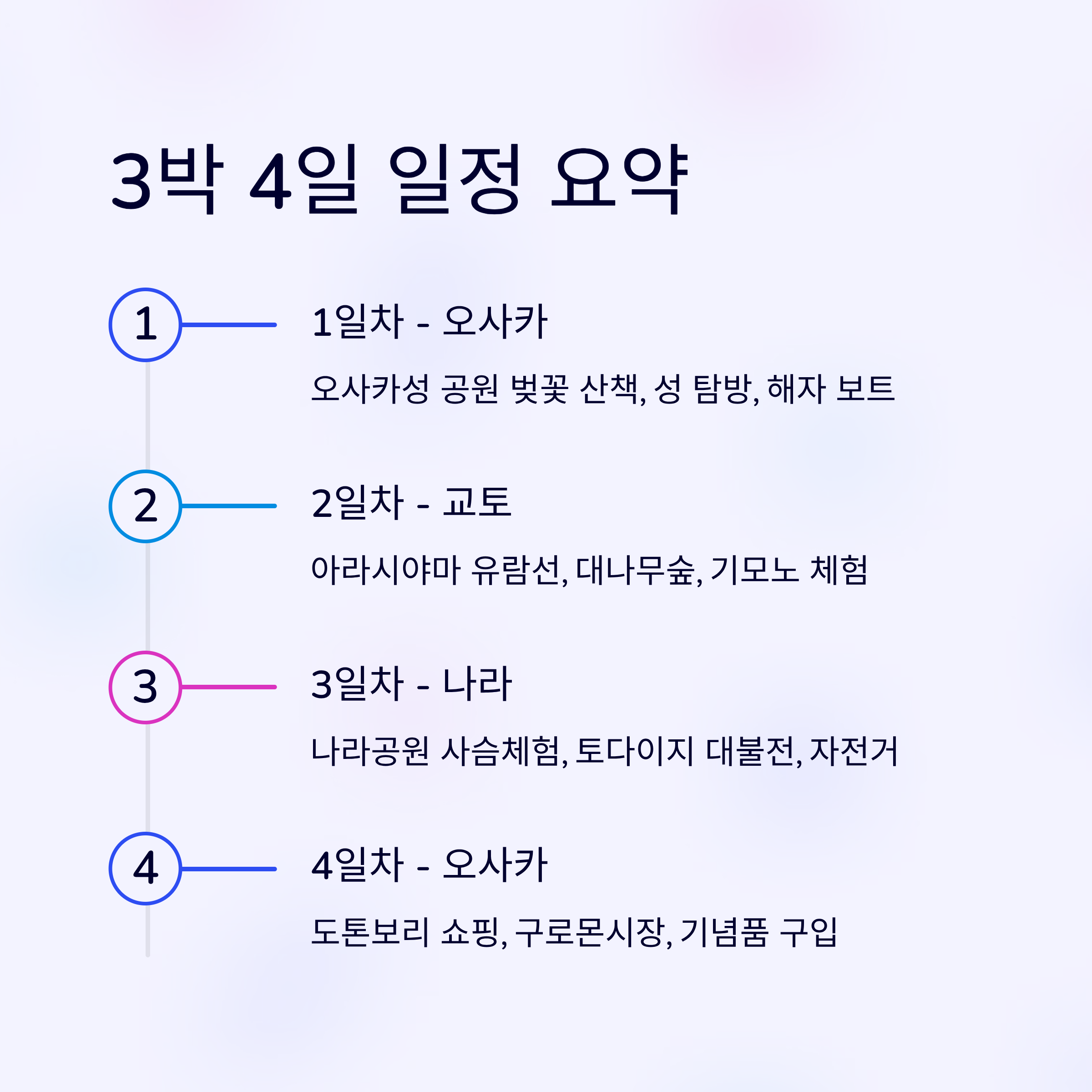 간사이 벚꽃 여행 일정 요약 (3박 4일 기준)