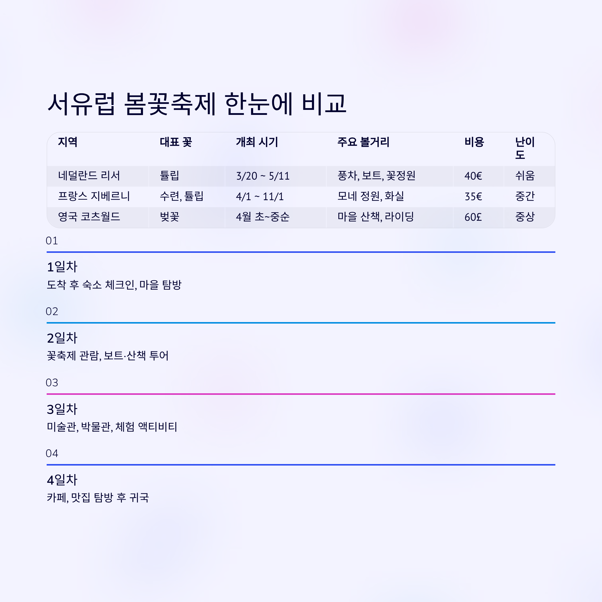 4월 꽃축제 여행 일정 예시 (3박 4일 기준)
