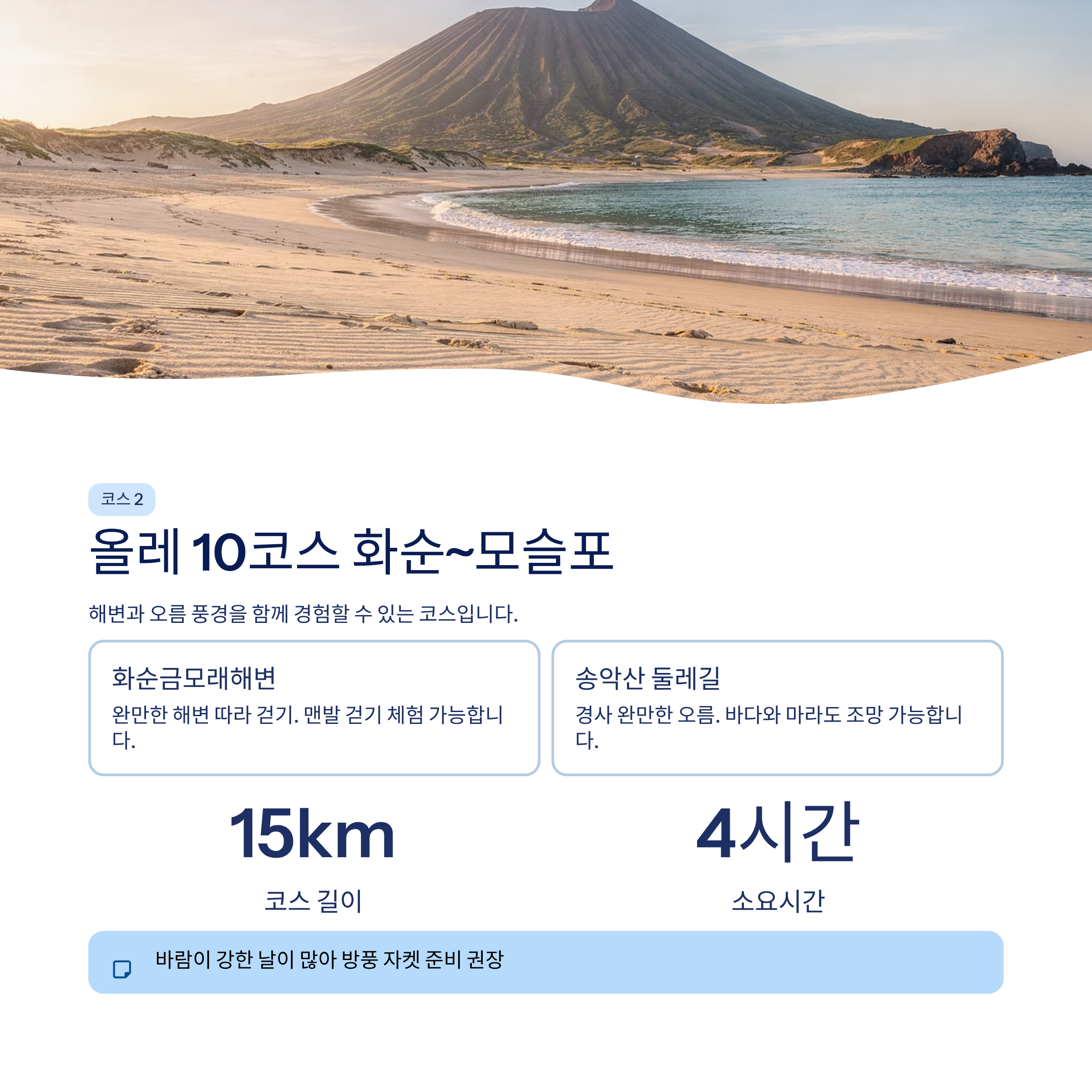 모래해변과 송악산 둘레길이 포함됩니다.방문 장소 및 상세 즐길거리