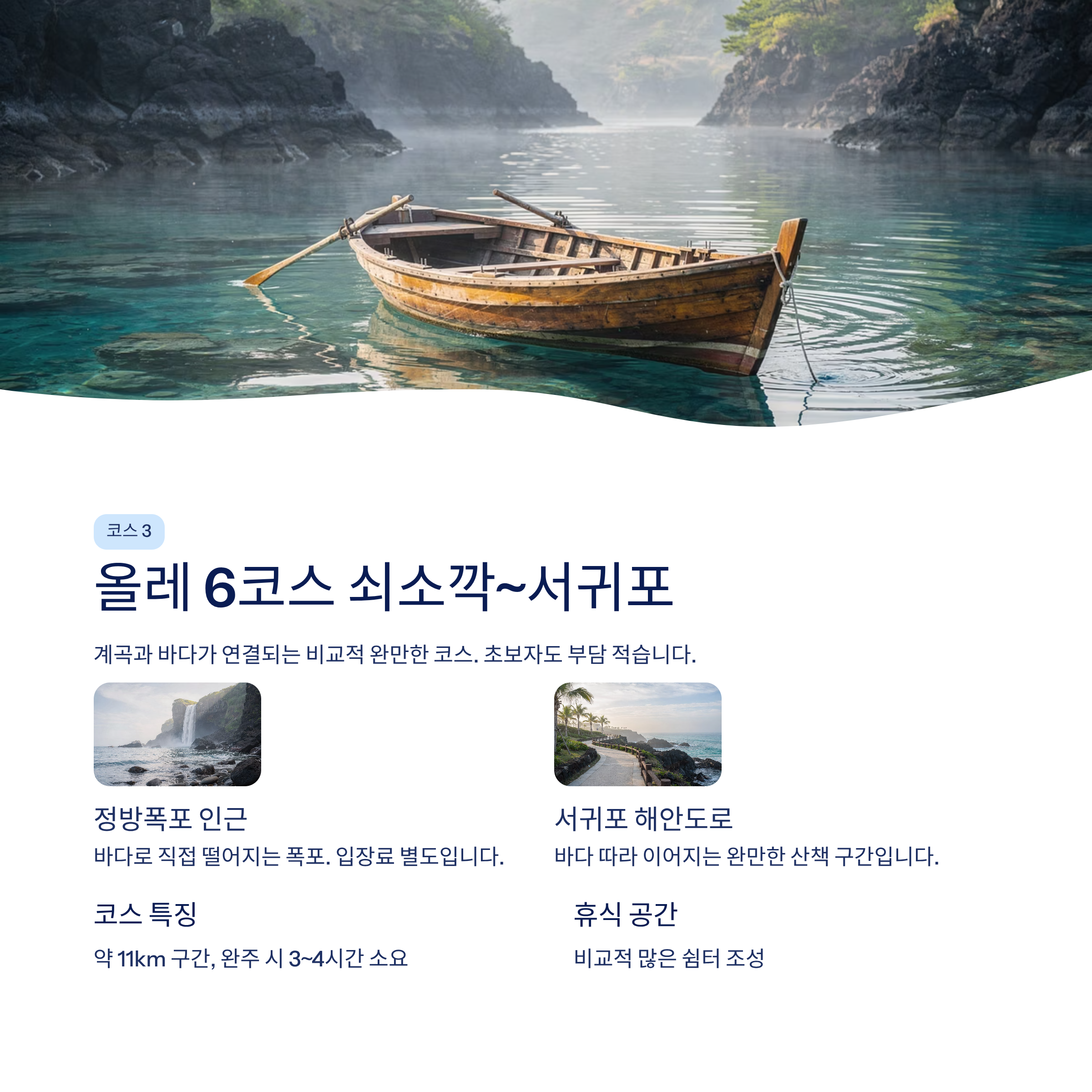 제주 남쪽 해안을 따라 이어지는 대표 인기 코스입니다.