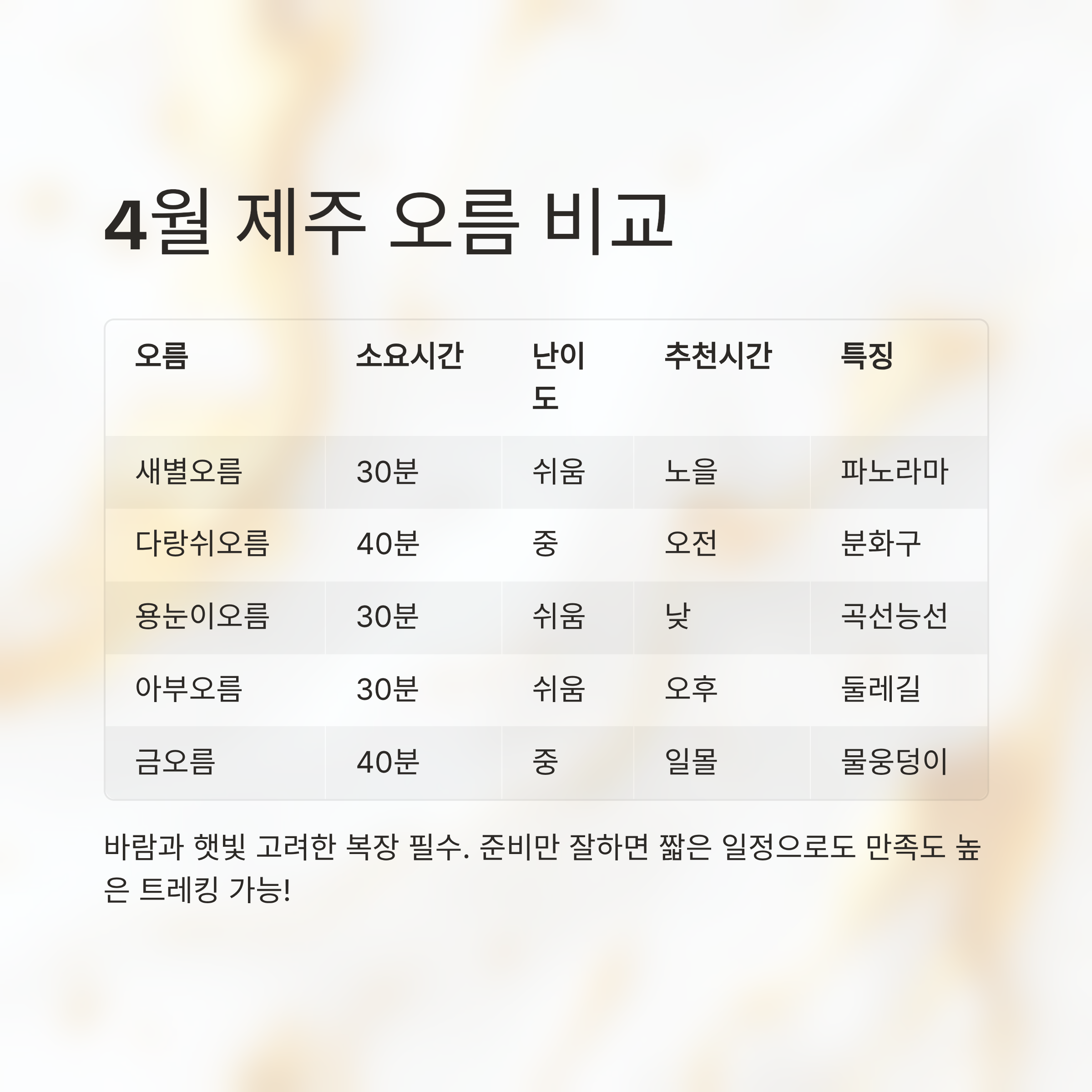 4월 제주 오름 트레킹을 계획하고 계신다면