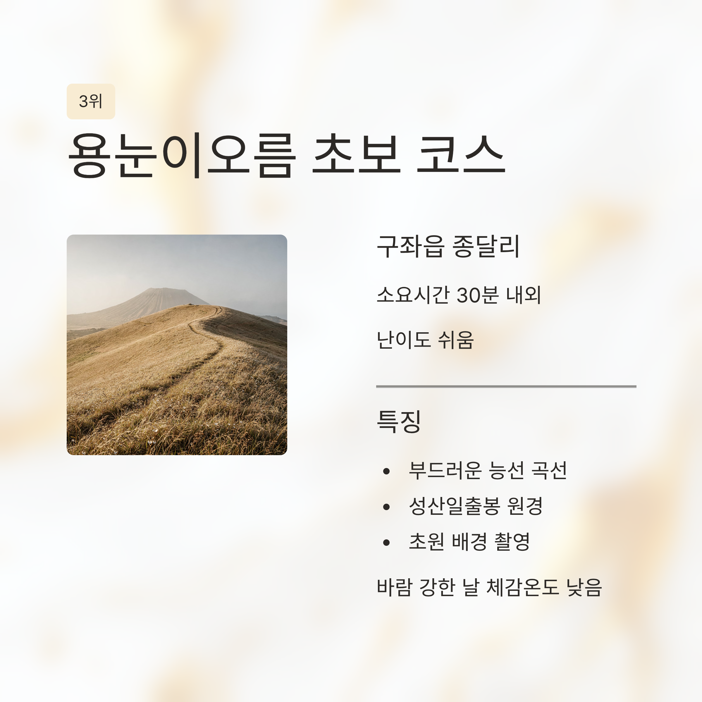 SNS에서 많이 언급되는 제주 오름 인기 코스 5곳을 소개해드릴게요.