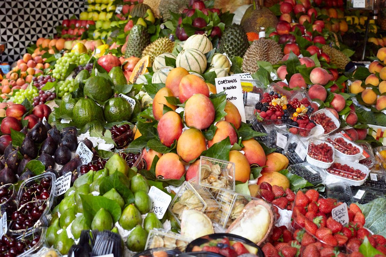 신선한 해산물, 하몽, 과일주스, 타파스를 한 번에 즐길 수 있는 먹거리 천국입니다.