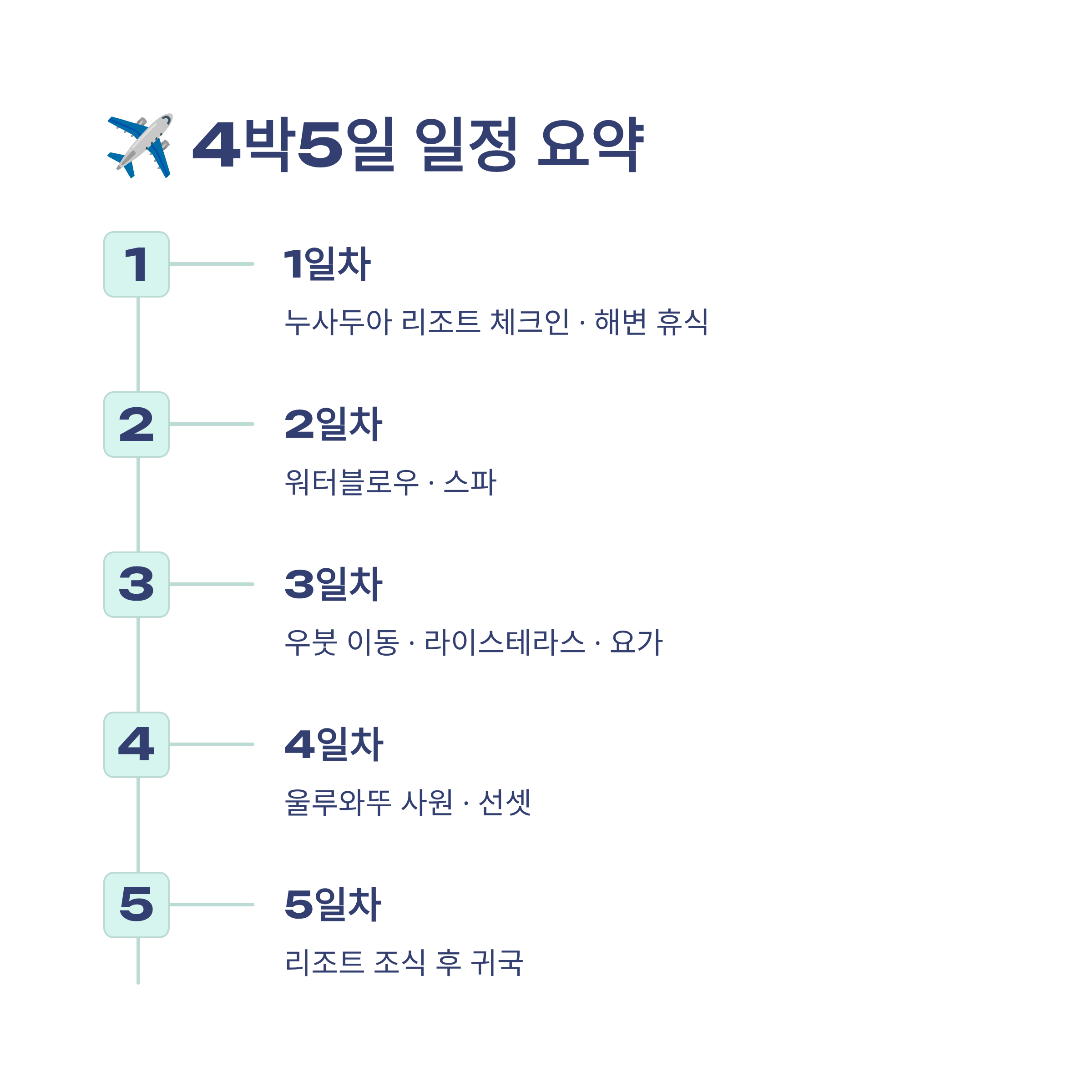 ✈ 4박5일 일정 요약 (리조트 휴양형)