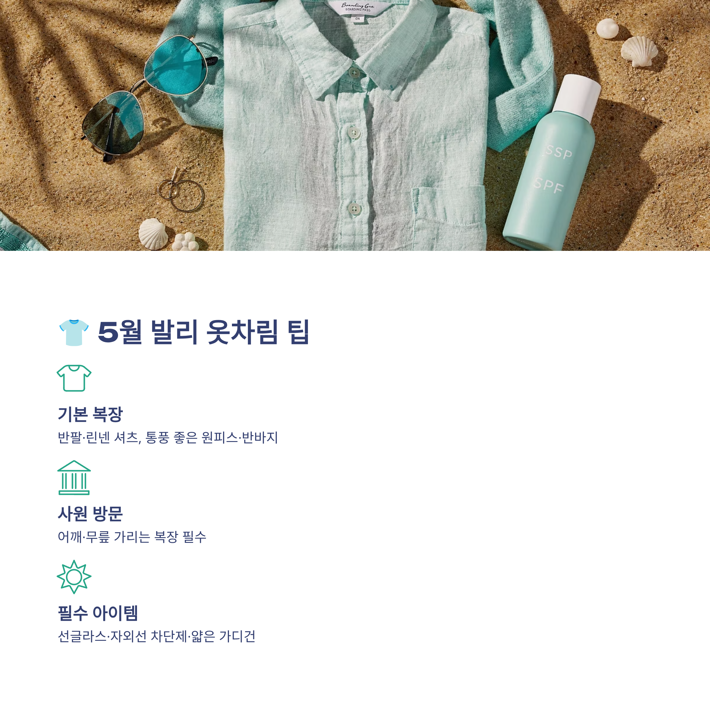 - 사원 방문 시 어깨·무릎 가리는 복장
