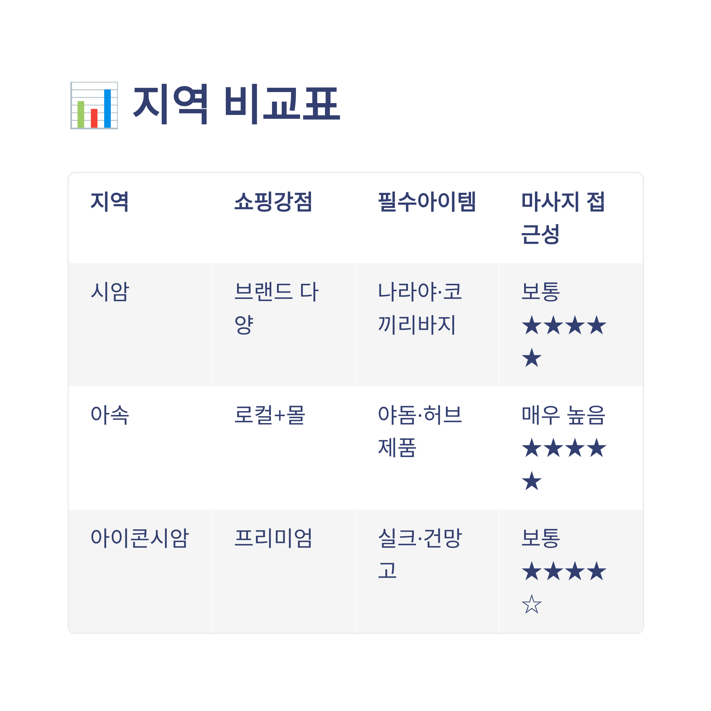 지역쇼핑강점필수아이템마사지 접근성추천도